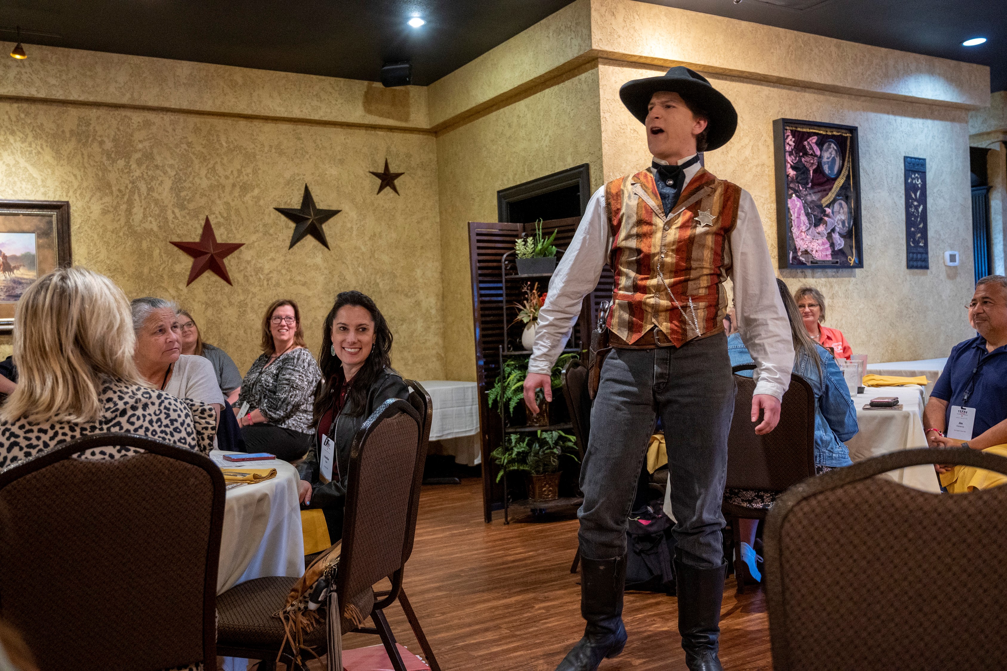 Tarnation! This zany cast of characters is more volatile than a case of nitro on a runaway wagon. If all heck breaks loose, and it probably will, it’s your job to help Marshal Courtright figure out who dunnit! So polish your spurs and grab your guns ‘cause the laughs are about to fly like bullets.